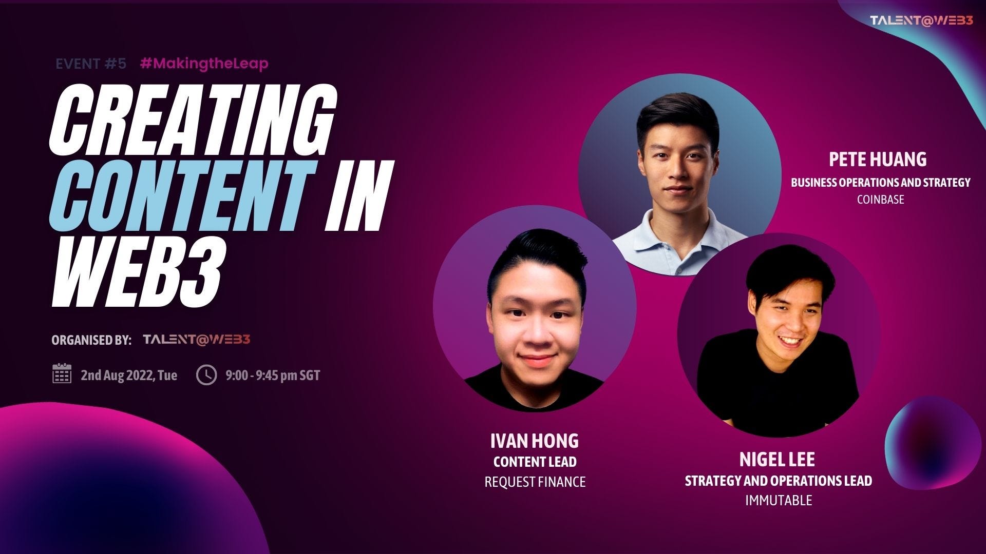 Content creation is by far one of the most underrated but crucial aspects of the web3 space with content creators blazing the trail for increased awareness and adoption of web3 technologies. Recently, we gathered some of the best minds in content for an insightful discussion about strategy, trends and hacks for the web3 content space.